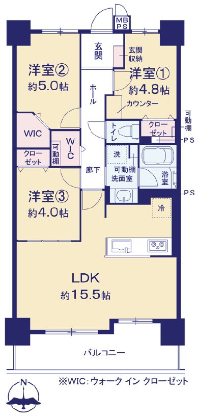 間取内容 LDK15.5畳   洋室5.0畳   洋室4.8畳   洋室4.0畳
