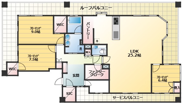 間取内容 LDK25.2畳   洋室9畳   洋室7.5畳   洋室6.4畳