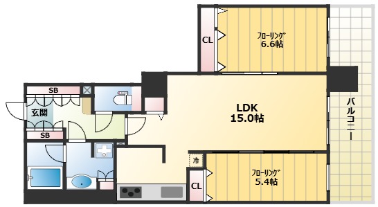 間取内容 LDK11.4畳   洋室6.6畳   洋室5.4畳