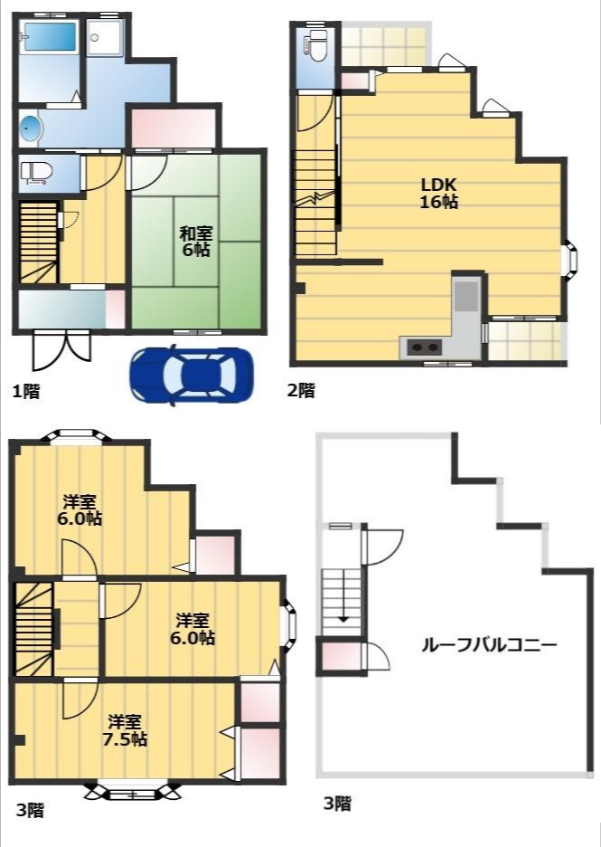 LDK16畳 和室 洋室7.5畳 洋室6畳 洋室6畳
